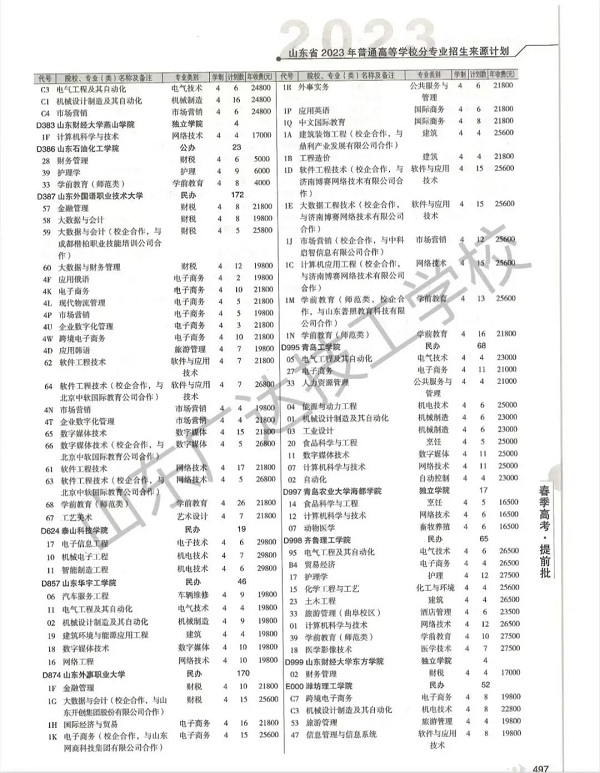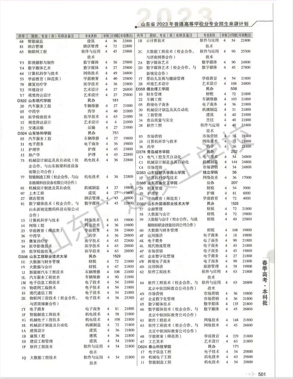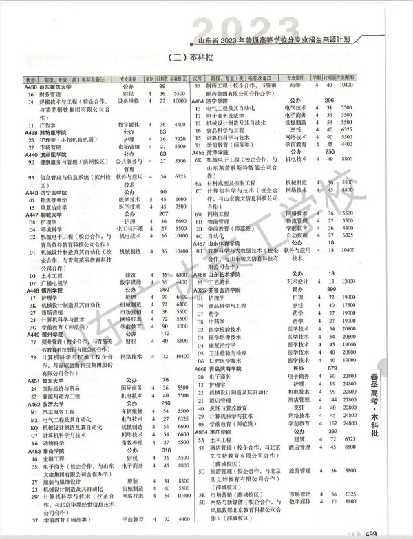 官方发布!2023年山东春季高考完整版招生计划